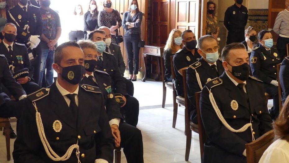 De todos ellos, dijo en su intervención el inspector jefe de la Policía, Manuel Muñoz, sentirse orgulloso destacando las condiciones diferentes que este año les ha tocado vivir en sus jornadas laborales. La labor pedagógica haciendo saber las nuevas normas a los ciudadanos y la preventiva para evitar contagios por coronavirus han sido dos objetivos fundamentales de estos meses complicados que también se han salvado con el reconocimiento de la ciudadanía cuando han salido a aplaudirles.