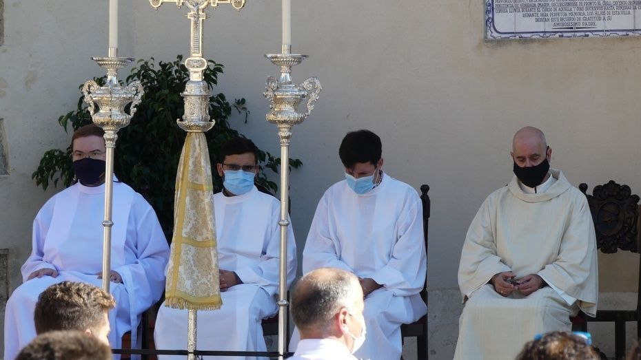 Con todo dispuesto y el altar acomodado en las escalinatas de la iglesia, comenzaba esta función principal en la que los hermanos del Rosario han podido realizar el acto de protestación de fe renovando sus votos.