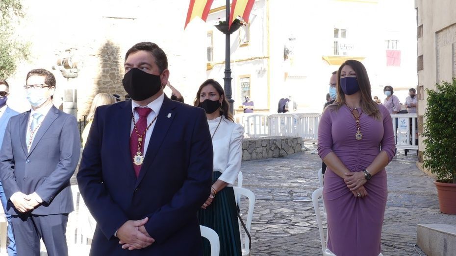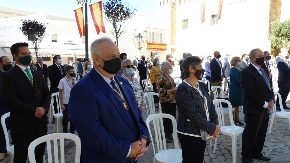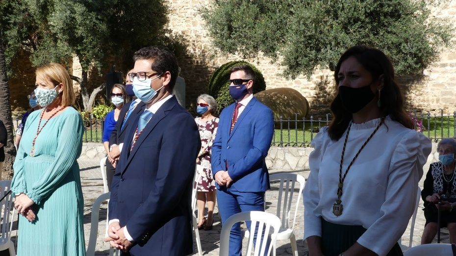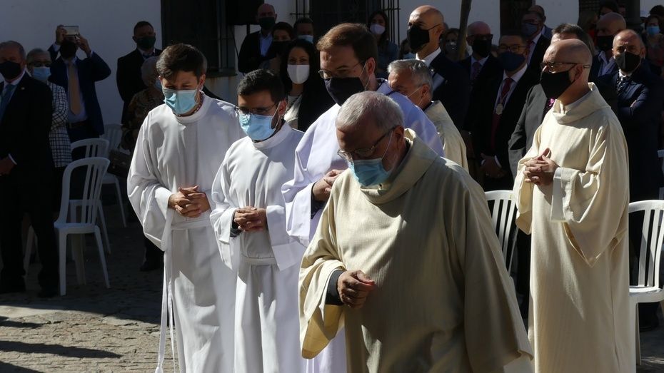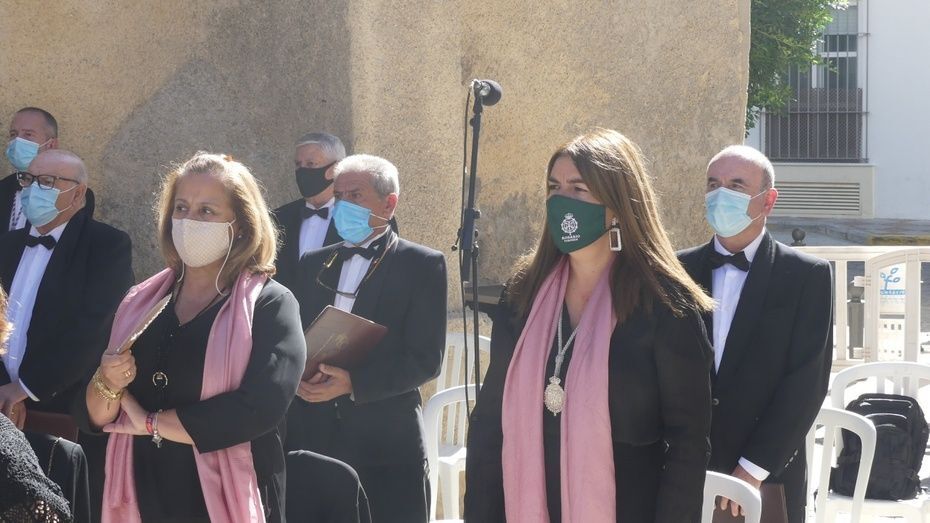 El repique de campanas en torno a las 11.45 horas, seguido de unos cohetes han dado paso a la celebración de la Función Principal de Instituto que este año, como novedad, y en parte para compensar la ausencia de salida procesional de la virgen esta tarde, se ha celebrado al aire libre en la plaza Bartolomé Pérez.