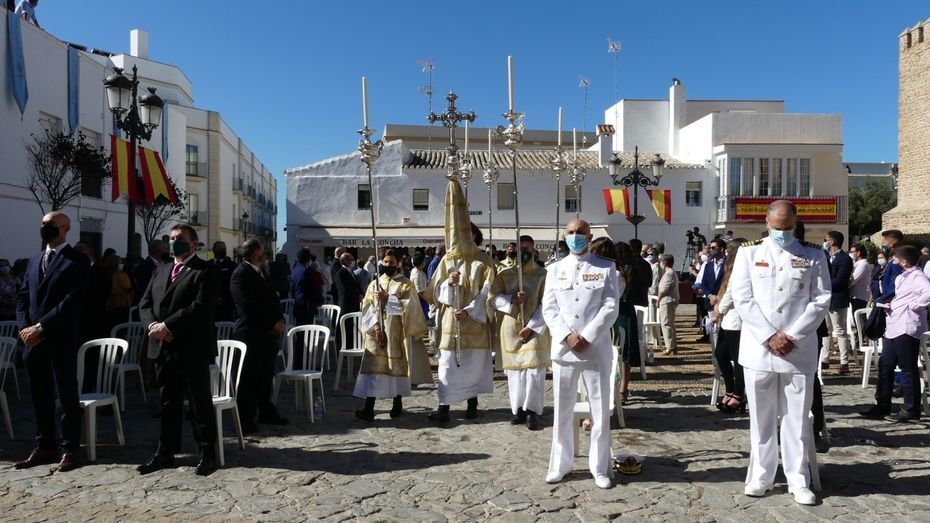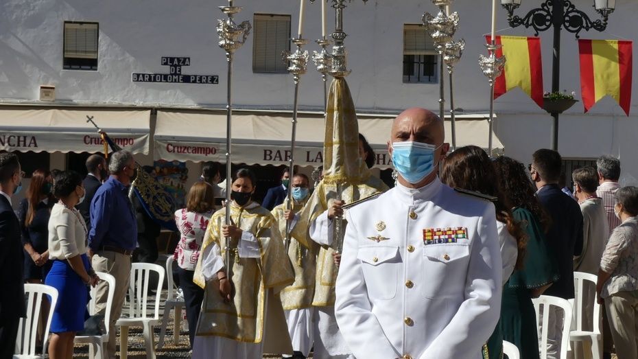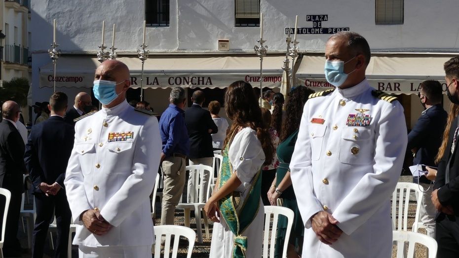 Hermanos mayores de otras hermandades, el almirante de la Base Naval y el comandante de las Actividades Navales de los EEUU en España, representantes de los cuerpos de la Policía Nacional, Policía Local, Guardia Civil y Protección Civil, miembros de la Corporación municipal (a excepción de Izquierda Unida y Podemos), el diputado provincial del PP, José Loaiza, miembros de la comunidad salesiana de las Hijas de María Auxiliadora, devotos y fieles, han seguido esta eucaristía que pone fin a los cultos religiosos en honor a la patrona ante la que hoy, en las ofrendas, el alcalde de Rota, Javier Ruiz, depositaba el bastón de mando como alcaldesa honoraria y perpetua de la villa que es. Además, se le ofrecía un rosario, flores, el pan y el vino.