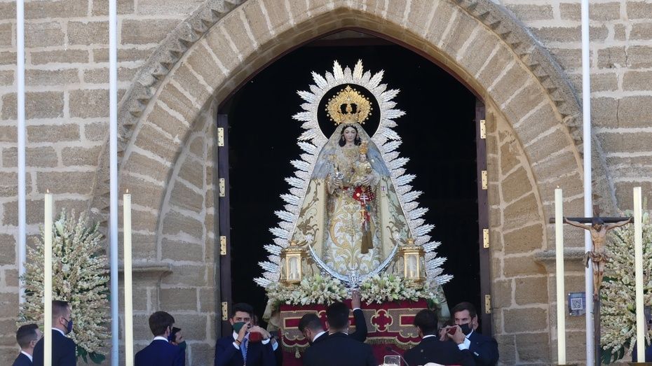 Tras la misa, que ha terminado en torno a la 1 del mediodía, la imagen de la patrona ha vuelto al interior de la parroquia de donde volverá a salir a las 18.30 horas, coincidiendo con el momento en el que se haría la salida procesional. Hasta las 22.00 horas estará la patrona en su parihuela para recibir a los devotos y fieles que deseen verla y acompañarla en este día del Rosario atípico, pero igual en sentimientos y fe.