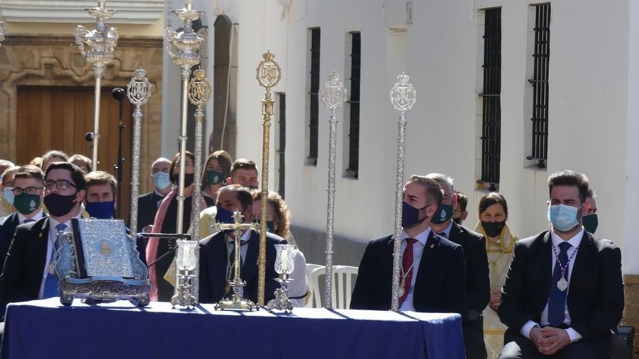 Para ello, la Hermandad del Rosario ha acotado la plaza Bartolomé Pérez, permitiendo solo el acceso a aquellos que tenían invitación solicitada previamente, además, se han respetado las distancias de seguridad con la colocación de sillas alejadas, se ha tomado la temperatura a los asistentes y se ha mantenido el orden de modo que esta cita, no provocara ni aglomeraciones ni situaciones alejadas de las recomendaciones sanitarias para evitar contagios por coronavirus.