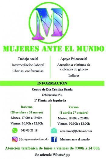 La Asociación de Mujeres ante el Mundo, teniendo en cuenta la cercanía del 25 de noviembre, fecha en la que se conmemora el Día Internacional de la No Violencia de Género, va a poner en marcha en estas semanas varias actividades con el fin de no dejar pasar por alto la necesidad de seguir luchando por erradicar la violencia de género.