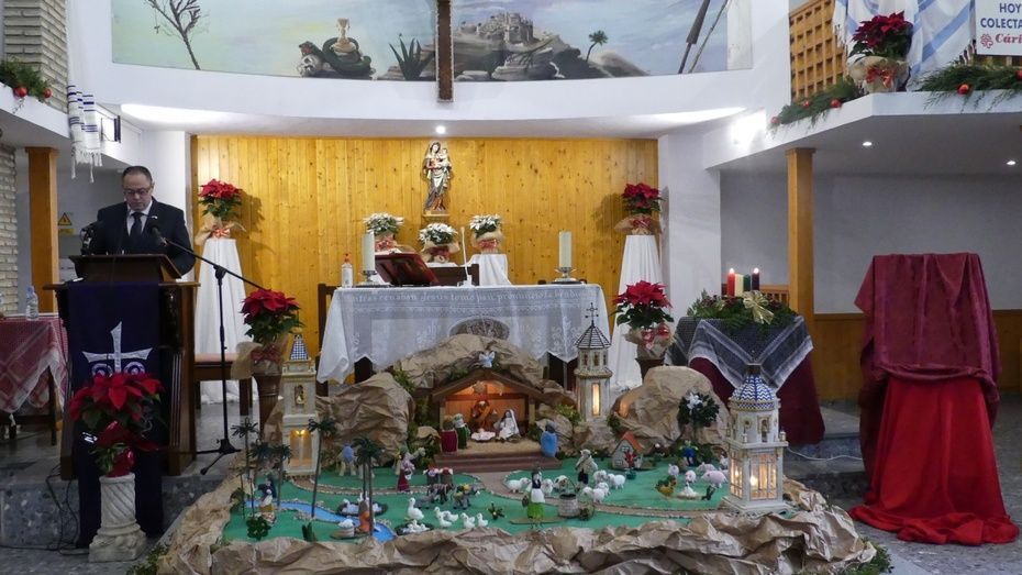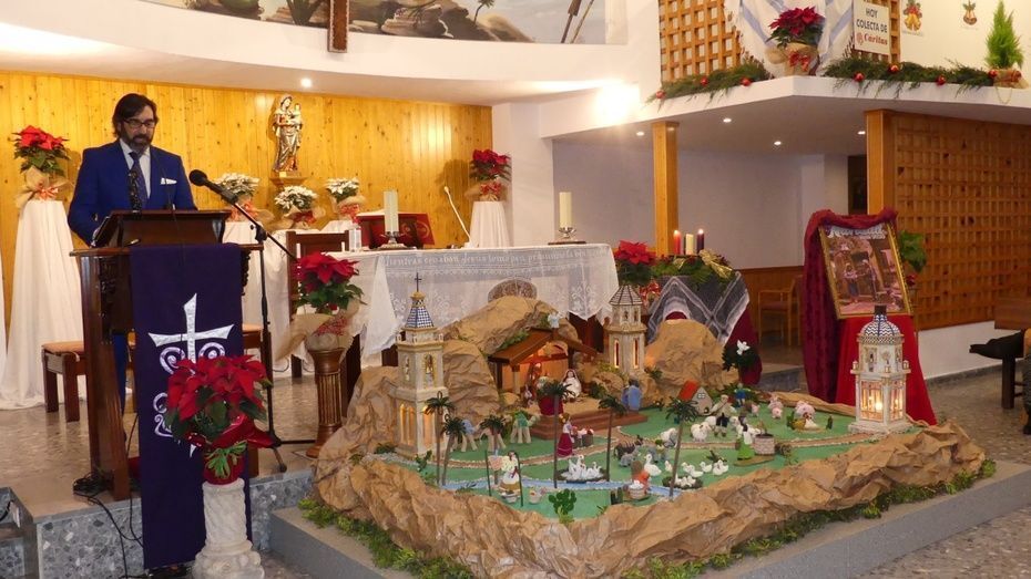 [Img #139953]José Manuel Bernal Márquez, agradecido por la oportunidad que le daba la asociación belenista, ha compartido con los asistentes su fe, conocida de sobra en la localidad, y su vinculación a una fiesta que dio origen a la fe cristiana que profesa desde pequeño.  Desde el atril de la parroquia del Divino Salvador,  que por segundo año ha sido elegida para esta cita, el exaltador se ha desecho en elogios a los belenistas que en 2009, motivados por la gran afición que había en la localidad, decidieron organizarse en asociación y seguir trabajando para reforzar la tradición de montar el belén cuando llega la Navidad. Una fiesta que reúne a familia, amigos y vecinos en zambombas, cenas, pestiñás, villancicos y  belenes y que este año, habrá que adaptarla a unas circunstancias excepcionales que no por ello, deben hacer perder su verdadero significado.