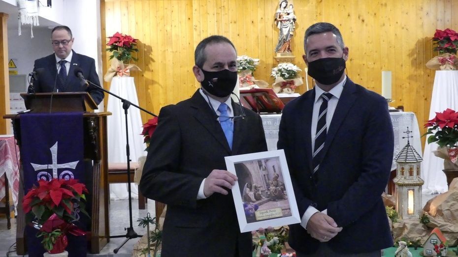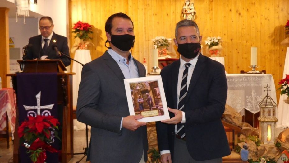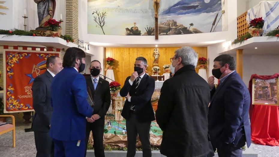 La asociación de belenistas "Camino de Belén" agradecía a este roteño sus palabras y le entregaba un obsequio, que también se entregó al párroco del Divino Salvador por abrir las puertas de la parroquia.