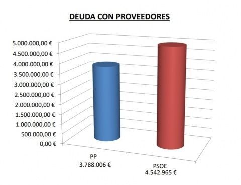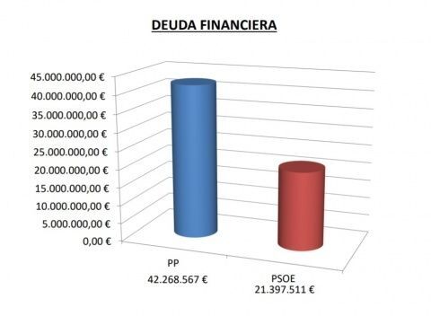 En la retahíla de datos para demostrar al PP que el PSOE no solo no es un mal gestor económico sino que se puede contrastar con datos que "nunca antes se ha pagado tanta deuda en tan poco tiempo", el delegado de Hacienda ha hecho alusión también a la deuda financiera,  que hace cinco años era de 42.268.567 euros de los que quedan 21.397.511 euros, es decir, que se habría pagado la mitad de lo que dejaron los populares tras su salida del gobierno. En el único caso en el que ha subido la deuda, reconoce Daniel Manrique de Lara, es en la deuda con los proveedores, que ha subido de  3.788.006 euros a 4.542.965 euros, debido, según ha argumentado, al pago de deuda financiera llevada a cabo en los últimos años.