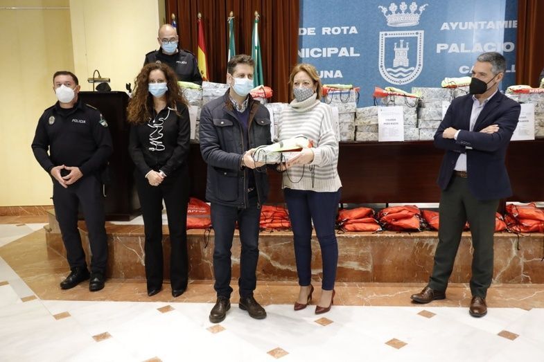 En el acto de entrega han estado presentes el alcalde de Rota, Javier Ruiz, el jefe de la Policía Local, Manuel Muñoz, la delegada municipal de Movilidad, Juani Montes, la  representante provincial de la Fundación Mapfre, Almudena Bazán, el delegado de la oficina de Mapfre en Rota, Francisco Armario, el presidente de Aeciro, Juan Alberto Izquierdo,  y los  directores de los centros educativos cuyos alumnos han participado.
