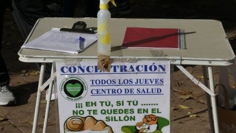 Como cada 15 días, los jueves tienen una cita a las puertas del centro de salud de Rota donde siguen gritando con megáfono y pancarta en mano "la sanidad pública se defiende", "oye tú, defiende tu centro de salud", "gobierne quien gobierne la sanidad pública se defienden" y el repetido "no nos mires, únete", que junto a otras consignas ya son todo un clásico en estas concentraciones que piden más especialidades médicas para la localidad y que mejoren recursos en el centro de salud.