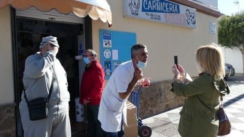 Jesús ha conocido en directo que tenía el premio Gordo ya que estaba escuchando de fondo a los niños de San Ildefonso, como la mayoría de negocios hoy, y enseguida los clientes de la carnicería han empezado a festejar con él este momento único. También algunos de sus familiares cercanos se han acercado a brindar con el agraciado en la carnicería que tiene en la plaza del Triunfo donde vecinos y conocidos le han vitoreado. Él, eufórico, ha invitado a una copa a todos los que estaban presentes en el momento de la celebración.