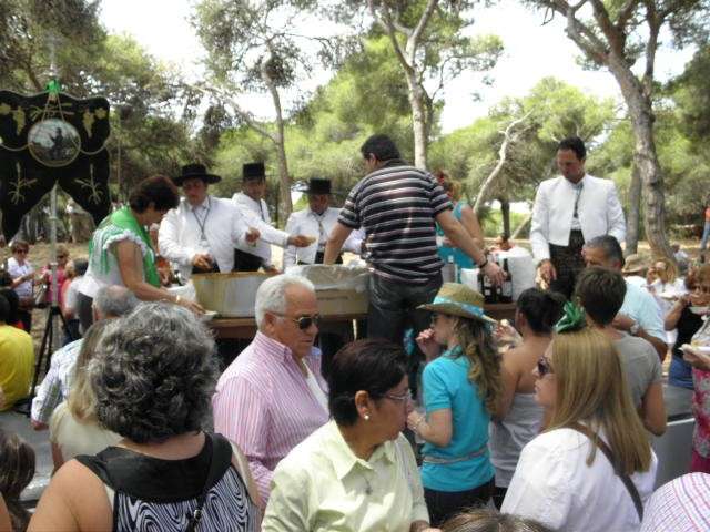 Bien temprano comenzaba el día dedicado a San Isidro con la salida de la comitiva desde la plazoleta del Padre Eugenio hasta los pinares sobre las nueve de la mañana. Durante el recorrido, el patrón de los agricultores estuvo acompañado por un cortejo formado por jinetes, amazonas, representantes de la Hermandad de Nuestra Señora del Rocío de Rota y la Hermandad de Nuestra Señora de Regla del Pinar de Chipiona así como las distintas peñas que se animan cada año a montar su carroza y dar ambiente desde primera hora a esta convocatoria festiva. Sin percances de ningún tipo, San Isidro llegaba a los pinares en torno a las diez y media de la mañana al son de los piteros Antonio Vázquez y Felipe Peña. Una vez en los pinos, el padre Santiago Gassín, director del colegio salesiano de Rota, ofició la Misa de Romeros a la que acudió un buen número de fieles. Tras el acto de Protestación de Fe tal como manda el Libro de Reglas, se procedió a la imposición de medallas a los nuevos hermanos y a las ofrendas de productos del campo,  a partir de ahí, los roteños que ya se encontraban junto a San Isidro comenzaron a disfrutar de una jornada en la que no faltó ni el cante, ni el baile y mucho menos, las ganas de pasarlo bien. Aunque hace años que la romería se vive de un modo muy distinto a como lo hacían nuestros mayores, lo cierto es que hay una cosa que no falla y es el gran ambiente familiar y de convivencia que se vive minuto a minuto en los pinares. Buena parte de ese ambiente lo dan las peñas formada por gente muy joven que apuesta por dar realce a la romería y los cientos de ciudadanos que a lo largo de todo el día pasean por los pinares de reunión en reunión de amigos así como aquellos que cargados de comida y bebida, pasan largas horas bajo los pinos.