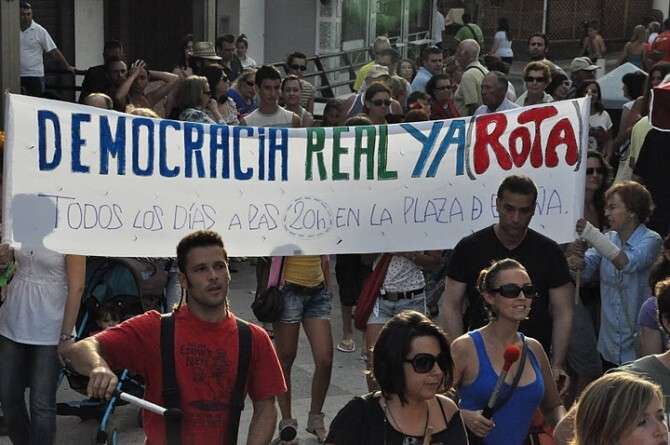 Más de 200 personas acuden a la cita de Democracia Real ¡Ya! de Rota