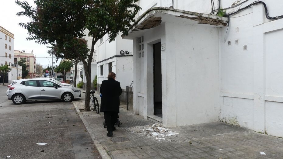 Vecinos de la barriada San Antonio están preocupados por la situación en la que se encuentran algunos bloques de esta zona en la que sin ir más lejos, el pasado viernes noche, se desprendía parte de la cornisa del número 23 de la calle San Juan Bosco cayendo a la acera varios cascotes. Afortunadamente, no pasó nada porque el suceso tuvo lugar sobre las 22.00 horas, cuando está restringida la movilidad de peatones por el toque de queda y eso ayudó a no tener que lamentar una desgracia que a cualquier otra hora del día hubiera tenido otras consecuencias.