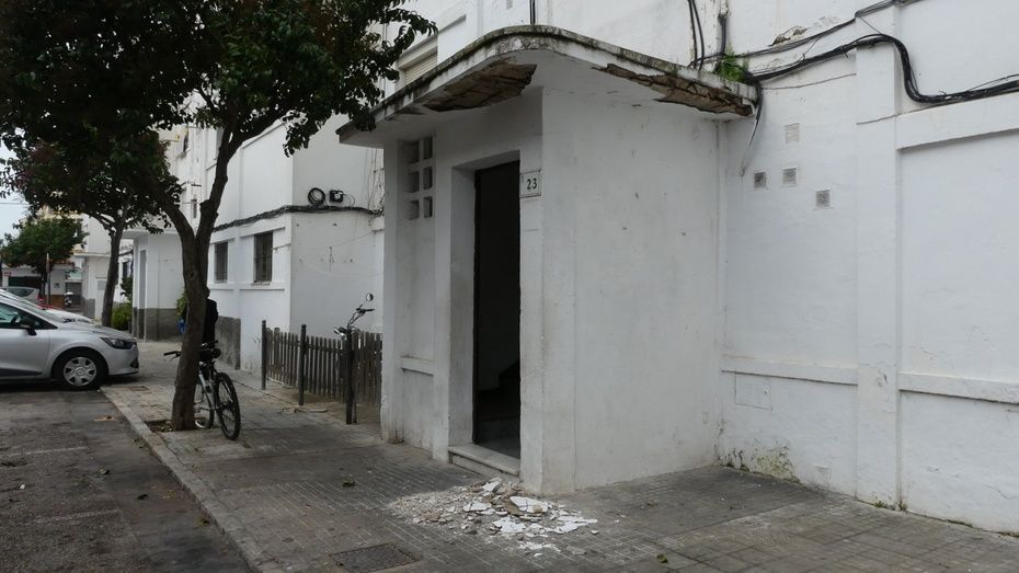 Preocupación vecinal por el desprendimiento de una cornisa en la barriada San Antonio
