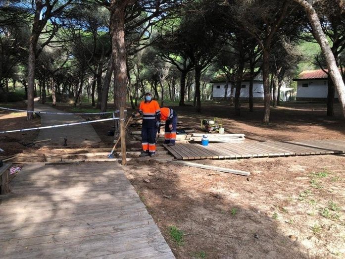 Por otro lado, operarios de Medio Ambiente y Playas están reparando también determinados puntos de las pasarelas que transcurren por el sistema de dunas y pinos, para adecentar los tramos o elementos que presentan algún tipo de desperfecto, y garantizar así el mantenimiento de este sistema de pasarelas, tan frecuentado por los ciudadanos.
