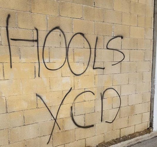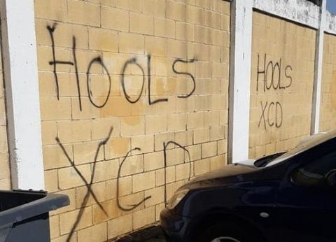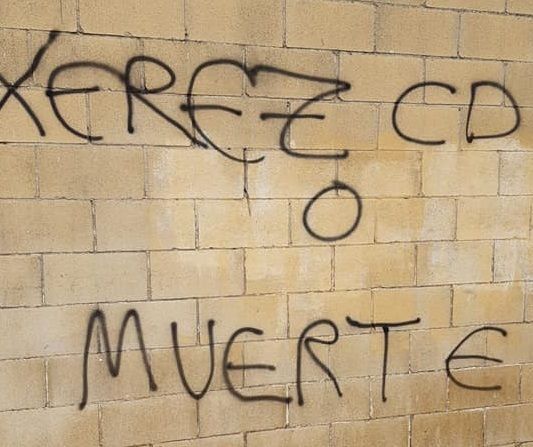 Denunciado por el propio club verderón en sus redes sociales, se lamentaba de la actitud de la afición visitante que ha escrito frases del tipo "Xerez CD o muerte", "QSM (que se muera) quien no quiera al Xerez" o "Hools Xerez", dejando mucho que desear.