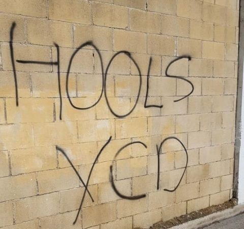 Pintadas en el exterior del "Navarro Flores" tras el partido del CD Rota contra el Xerez CD