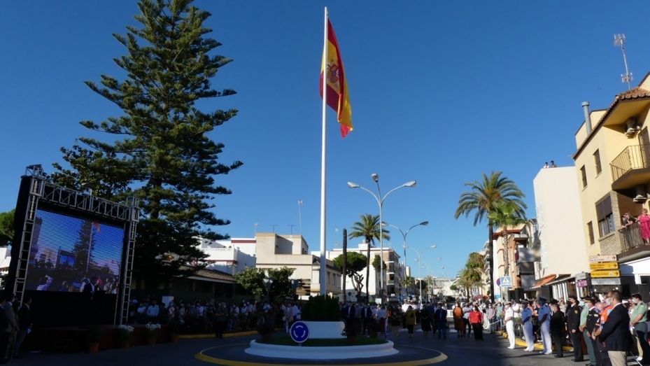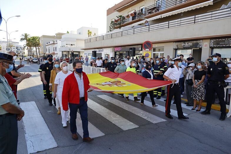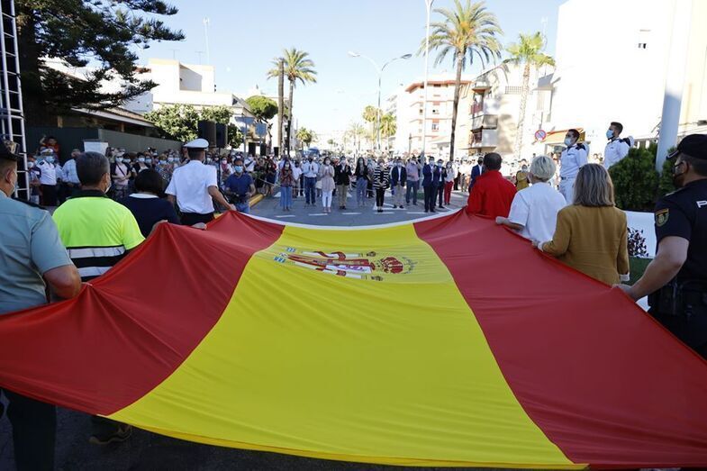 El Ayuntamiento de Rota celebró un acto institucional para homenajear a las víctimas del Covid-19 y para agradecer a la sociedad roteña su comportamiento ejemplar, solidaridad y fuerza. Desde ese día, ondea una bandera de España en la rotonda del cruce de las avenidas María Auxiliadora y la Marina.