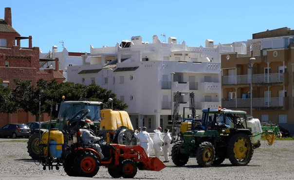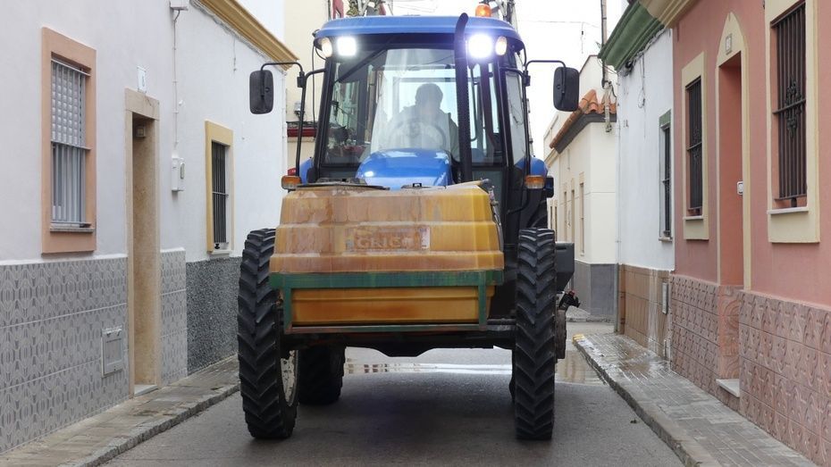 Los agricultores salen a las calles a reforzar las labores de limpieza con sus tractores y así permanecieron 42 días, todas las tardes.