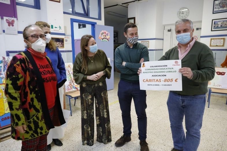 Esta misma semana, la comunidad educativa del colegio público Maestro Eduardo Lobillo ha entregado a Caritas Interparroquial de Rota una donación solidaria de 805 euros que han recaudado padres y madres y profesores del centro.