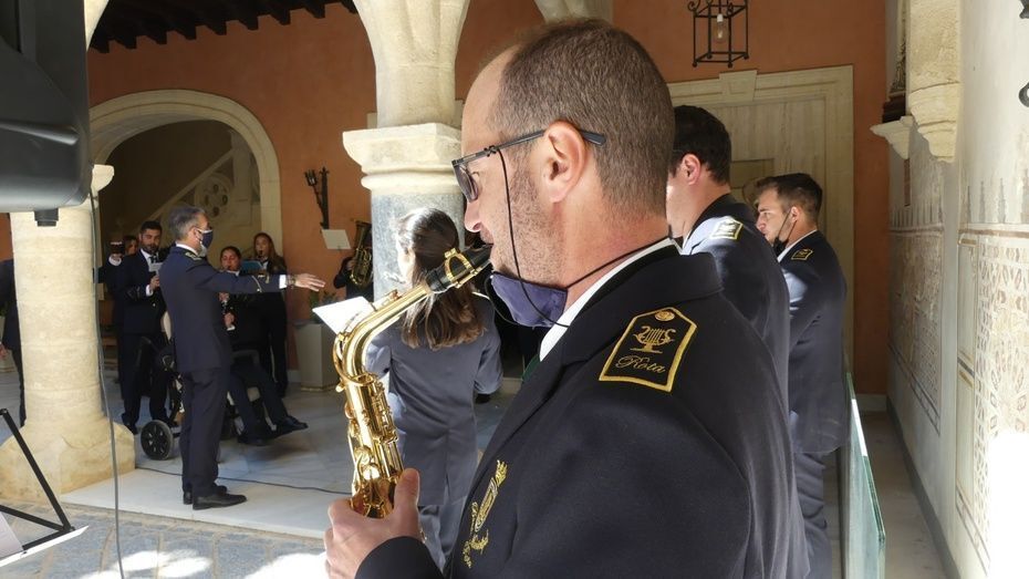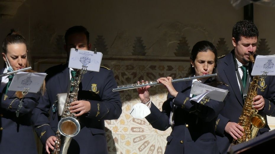 En el acto de inauguración de hoy, en el patio del Castillo de Luna, la banda municipal de música "Maestro Enrique Galán" se ha encargado de nuevo de poner la nota musical a un evento que es antesala de una Semana Mayor distinta. En él, han tomado la palabra, aunque de forma muy breve, algunos de los protagonistas de estas dos exposiciones que han dado las gracias al Ayuntamiento de Rota por la oportunidad de poder ver expuestos estos enseres y fotografías.