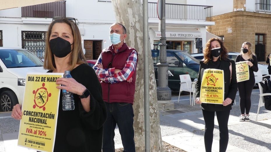Hoy, como muestra de ese apoyo, concejales de los diferentes partidos de la localidad (PSOE, PP, Izquierda Unida, Ciudadanos, Vox y Podemos), han estado presentes en la hora de la concentración que han protagonizado por primera vez las peluqueras y peluqueros, barberos y esteticistas de Rota. También ha estado el presidente de Aeciro.