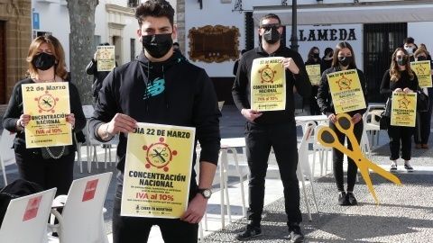 De negro y en silencio, los peluqueros, barberos y esteticistas roteños reclaman un IVA reducido