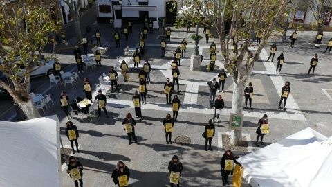 Pepi Fernández, representante de la plataforma nacional "Creer en nosotros", impulsora de esta concentración, ha dado las gracias a las 80 personas que hoy, guardando las distancias de seguridad y con mascarillas, conscientes de la situación sanitaria, han acudido a esta llamada para visibilizar su protesta. No han hecho ruido, solo su presencia ha llamado la atención en la céntrica plaza.