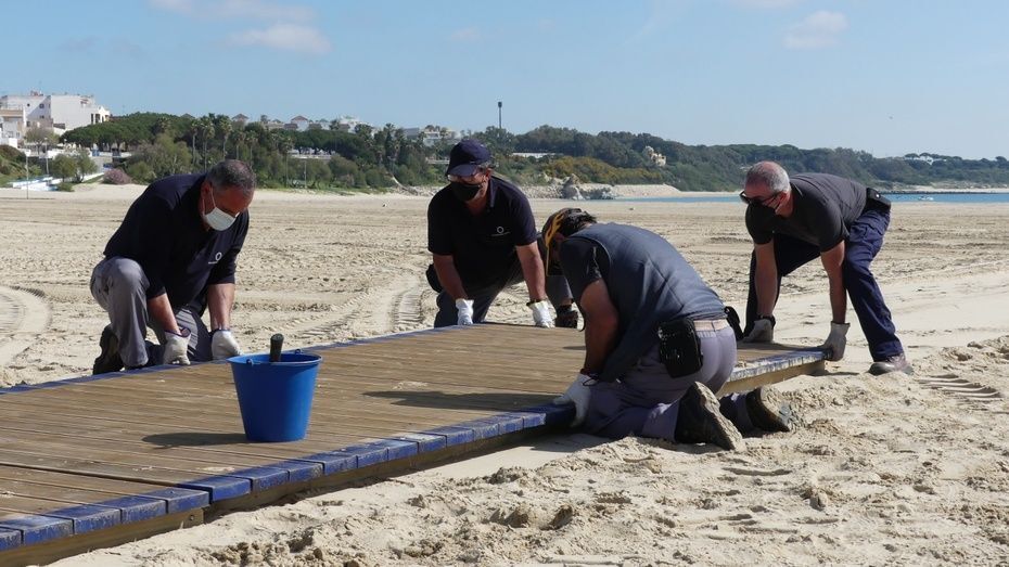 Hasta entonces y en estos días, desde la delegación de Playas se trabaja en las labores de limpieza manual y mecánica de la lámina de arena, paseos marítimos, escaleras y accesos y entornos más próximos de las playas, en la colocación de las tarimas de madera para mejorar los accesos a la lámina de arena, y en abrir algunos aseos en puntos como la playa de la Costilla, Chorrillo, Punta Candor y Costa Ballena.