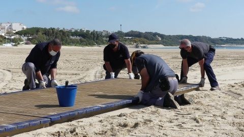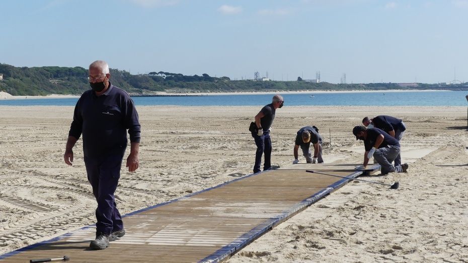 Los trabajos para poner las playas a punto de cara a la temporada media han comenzado y desde hace unos días, los operarios municipales están trabajando en la colocación del entarimado que facilitará el acceso a aquellas personas que, aprovechando el buen tiempo, quieran disfrutar de la costa roteña.