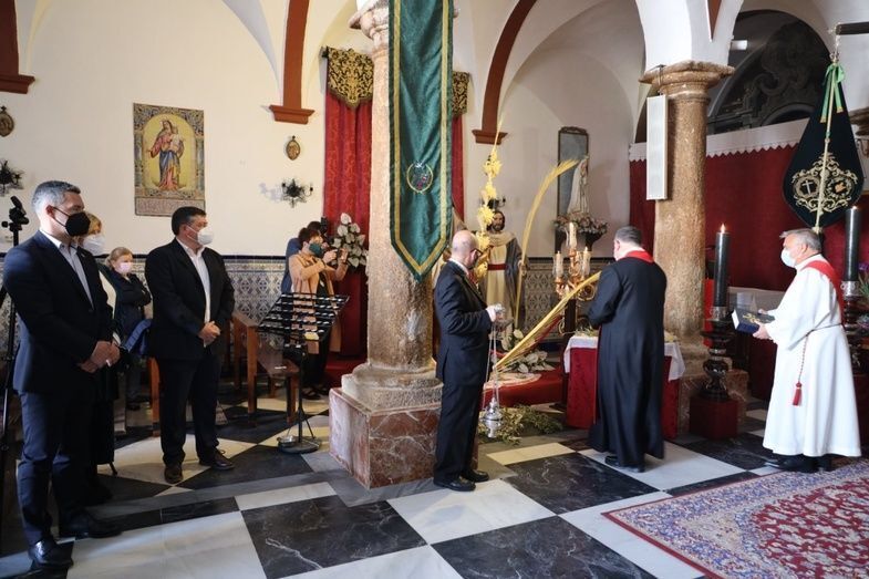 El alcalde ha mostrado su apoyo a la hermandad en una Semana Santa tan atípica como esta, en la que no habrá salidas procesionales, y en la que la hermandad ha decidido ampliar el horario de apertura de la capilla durante los días asignados para sus tradicionales estaciones de penitencia, el Domingo de Ramos con La Borriquita, el Martes Santo con Jesús Cautivo y el Viernes Santo con el Cristo de la Veracruz y la Virgen de las Angustias.