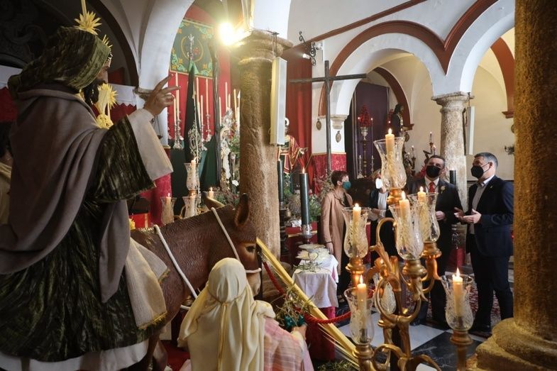 El hermano mayor de la Hermandad de la Veracruz, Jesús Alegre Figueroa, y miembros de la junta directiva, han mostrado a los representantes municipales los titulares que la hermandad ha dispuesto especialmente en la capilla para todas aquellas personas que deseen acercarse a visitarlos durante esta Semana Santa 2021.