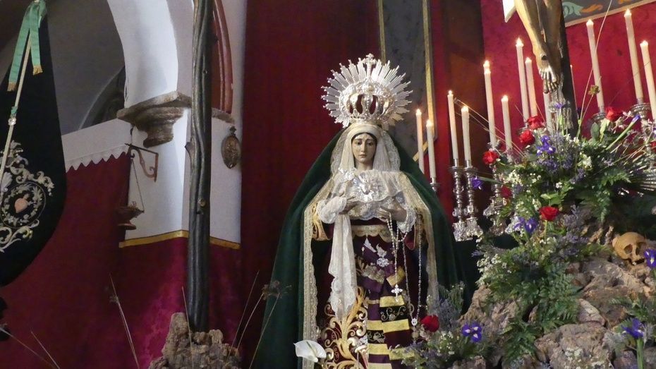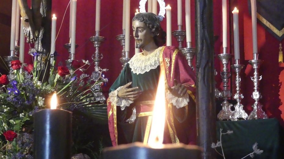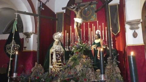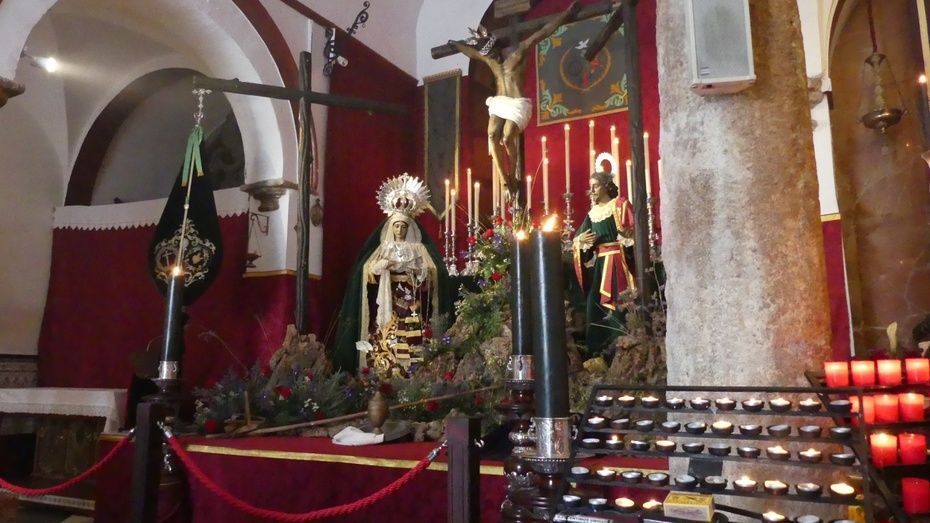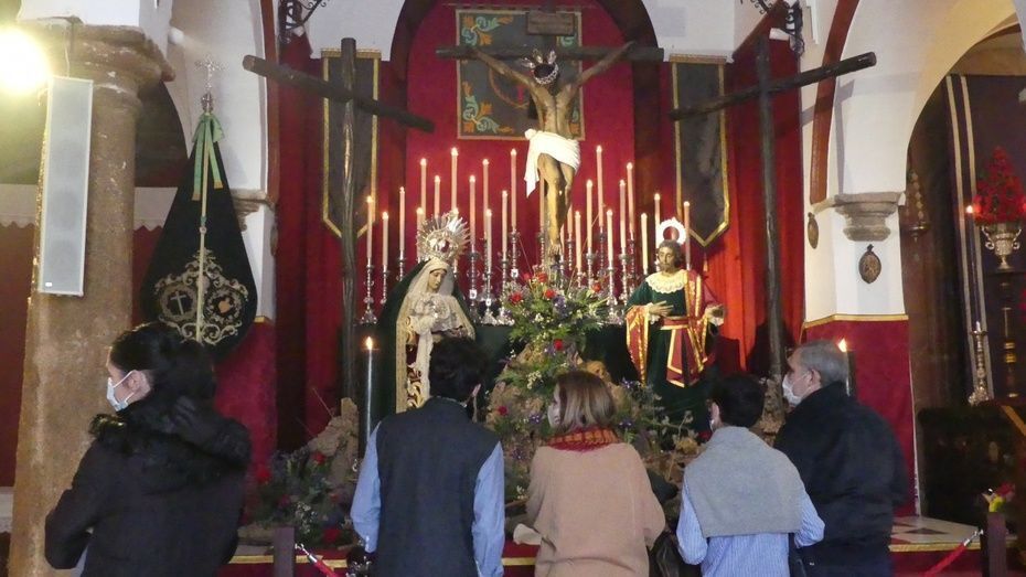 Viernes Santo con el Cristo de la Veracruz y las Angustias presidiendo el altar de San Roque