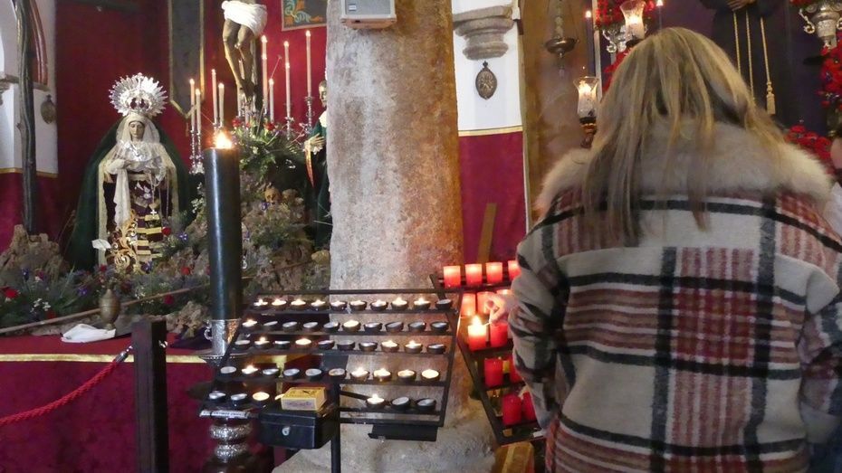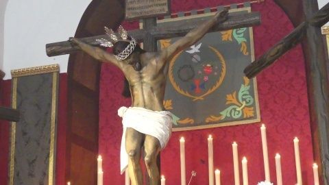 Este año, desde el comienzo de esta semana tan especial para los cofrades, se han podido ver las imágenes de esta hermandad expuestas en un altar de veneración montado para que los ciudadanos puedan visitarlo. Aunque llevan seis días con las puertas de par en par, hoy Viernes Santo, las miradas en la capilla de San Roque se fijan en Jesús crucificado y en su madre.