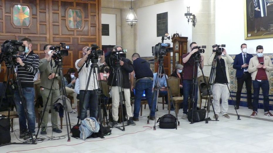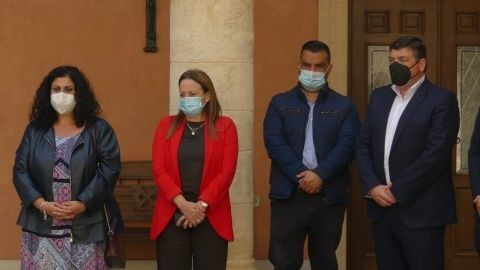 Antes de iniciar la comparecencia ante la prensa que esperaba en el salón capitular del Palacio Municipal Castillo de Luna, la ministra de Hacienda, María Jesús Montero, el alcalde de Rota, Javier Ruiz, y miembros de la Corporación municipal, han mantenido un minuto de silencio en memoria de los dos periodistas españoles David Beriain (Artajona, Navarra, 43 años) y Roberto Fraile (Barakaldo, Bizkaia, 47 años). Ambos han sido asesinados tras haber desaparecido el pasado lunes en Burkina Faso después de que el convoy en el que viajaban por el este del país sufriera el ataque de un grupo armado. Ayer se notificó su muerte por parte de la ministra de Asuntos Exteriores y hoy en todas las comparecencias públicas se ha guardado un minuto de silencio en la memoria de ambos.