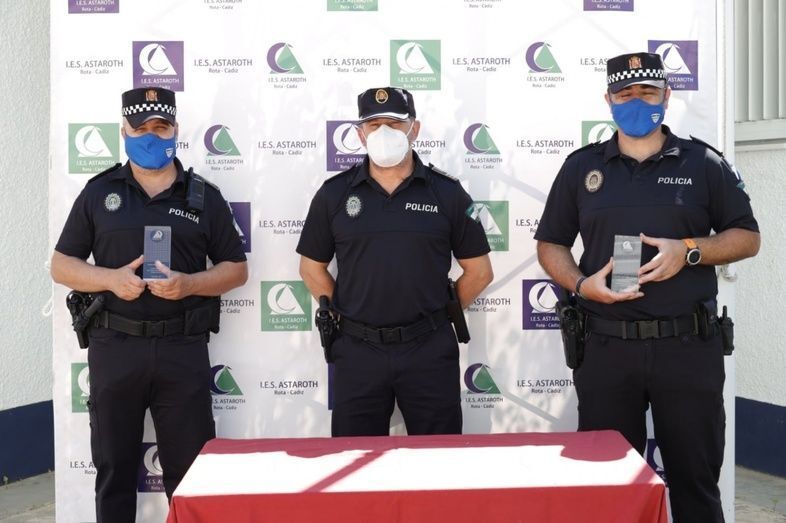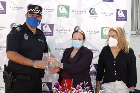 Los agentes tutores Jesús Villalba y Juan J. Paredes han recibido un reconocimiento muy especial por parte del IES Astaroth. En un acto celebrado en el mismo centro, el instituto ha querido agradecer y reconocer la labor de mediación y prevención que ambos han realizado a través del programa "Agente Tutor" que el Ayuntamiento de Rota impulsa para mejorar la convivencia en el entorno escolar.