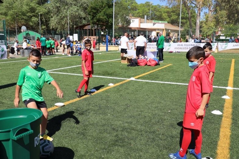 Unos 200 niños en las categorías alevín, benjamín y prebenamín masculino y femenino de distintos clubes d ela provincia, entre los que se encuentran la U.D. Roteña, el C.D. Rota y el C.D, Rosario han participado esta mañana en las distintas actividades, juegos y pruebas de habilidad personal, de habilidades técnicas, tiro a portería, conducción de balones, etc. que componen el evento "Reto supérate", organizado por la Real Federación Andaluza de Fútbol.