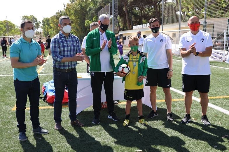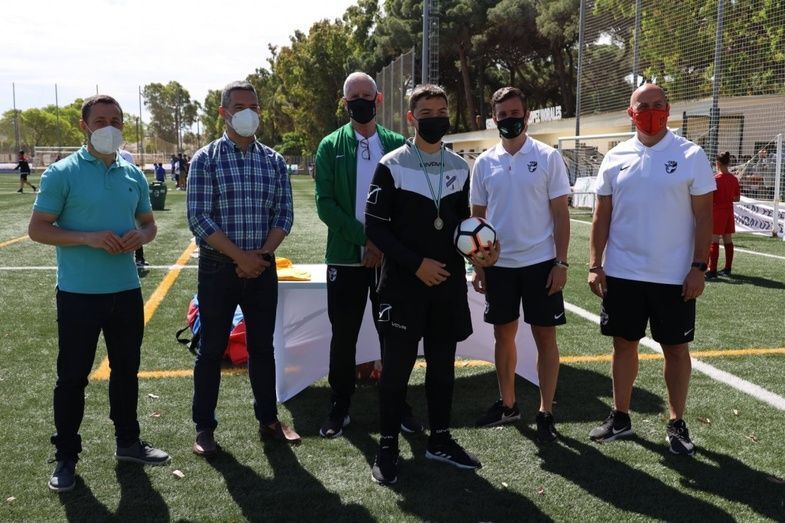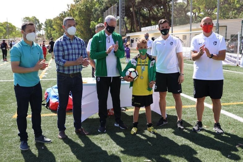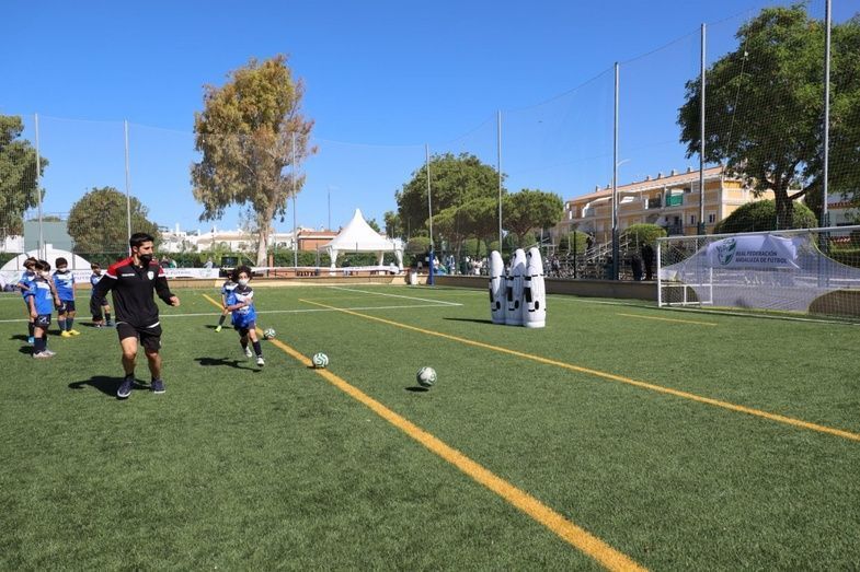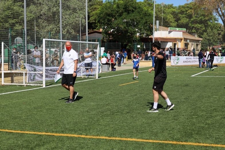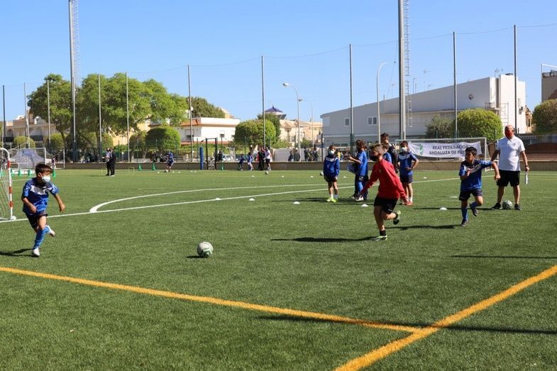 Además, el primer edil y el delegado de Deportes también han participado junto con el presidente de la Federación Andaluza de Fútbol en Cádiz, Antonio Bernal, el técnico de la Federación Española de Fútbol, Pedro Curtido, y el director deportivo de la RFAF, Martín Torralba, en una de las entregas de medallas y obsequios que se ha llevado a cabo a lo largo de esta mañana.