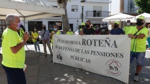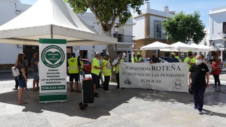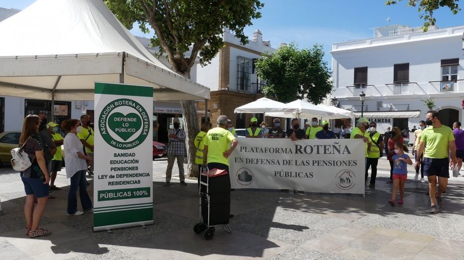 Con su habitual pancarta, que se puede ver cada semana en la plaza de España, los pensionistas y algunos roteños que se suelen sumar a esta convocatoria, han vuelto a gritar alto y claro sus reivindicaciones.