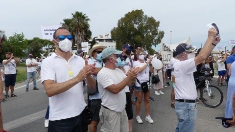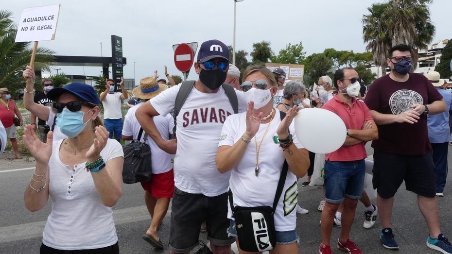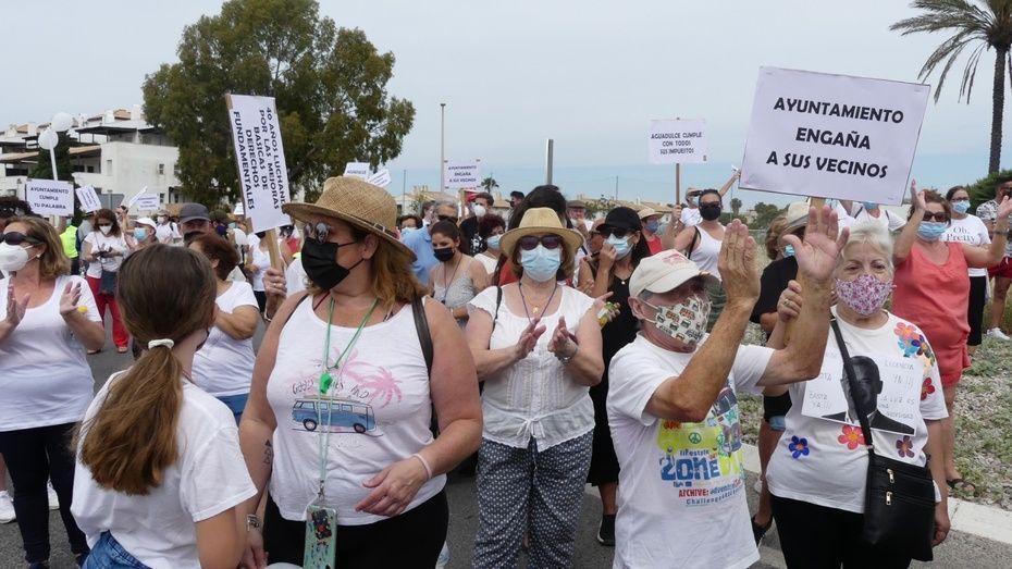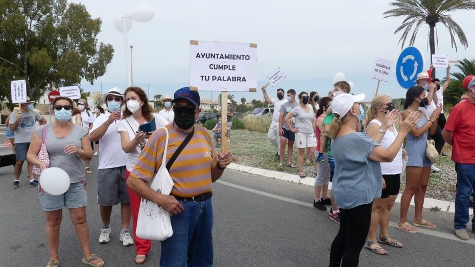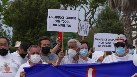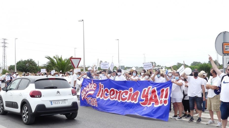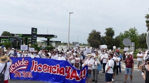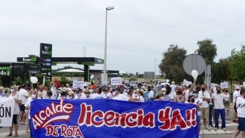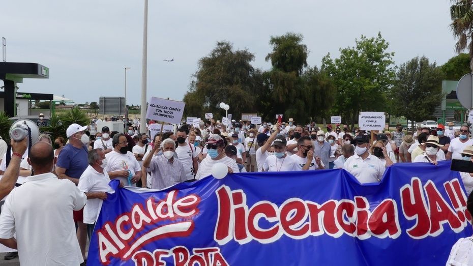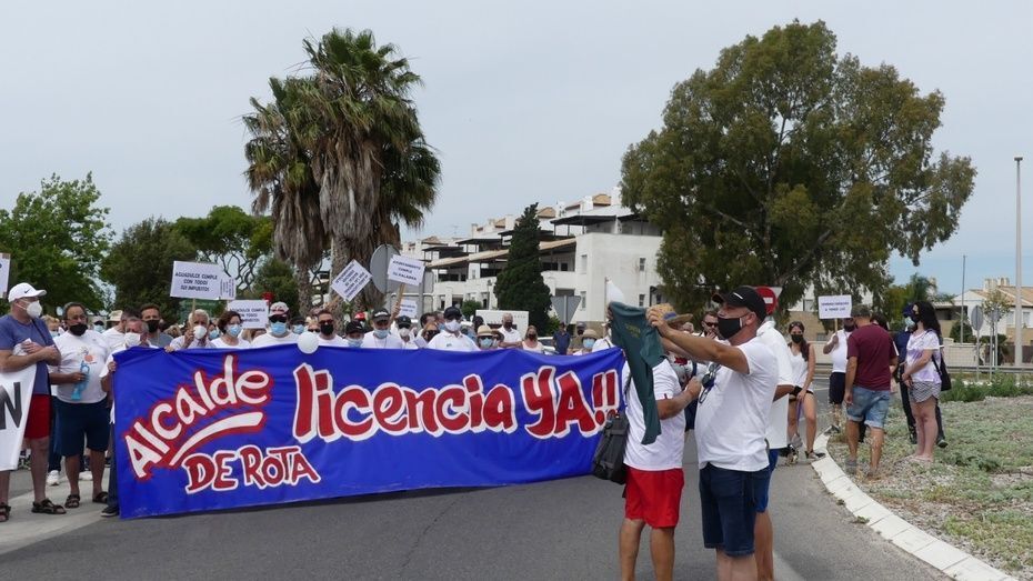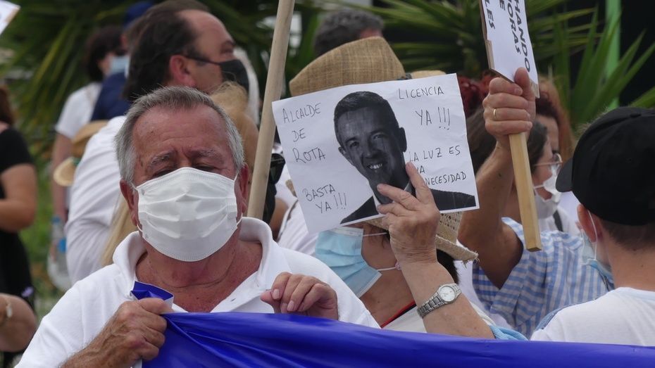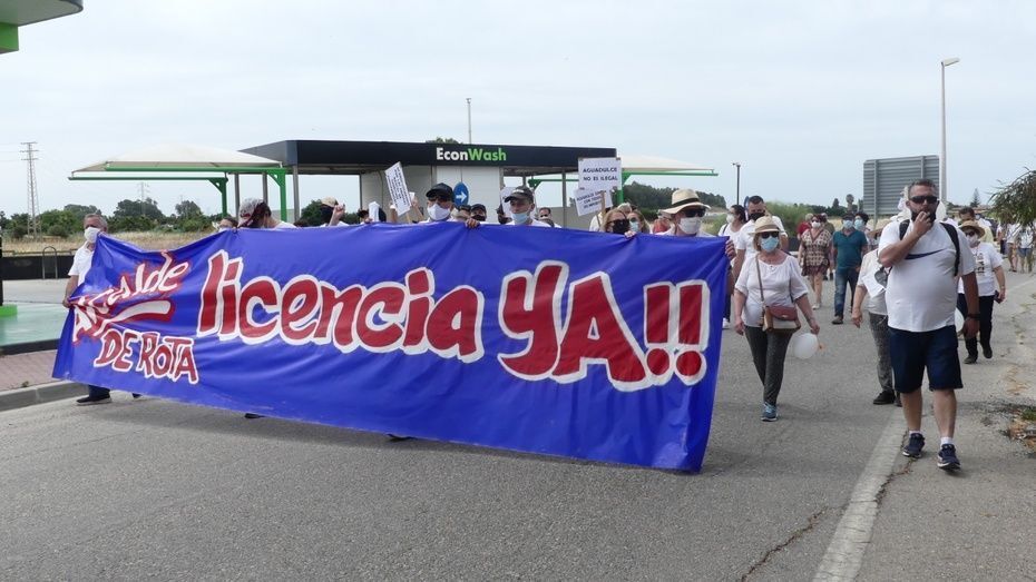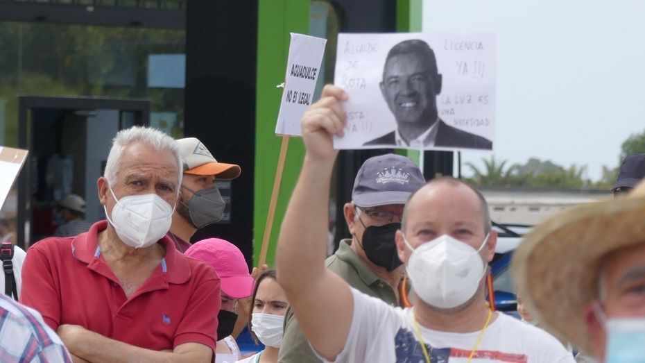 Minutos antes de las doce del mediodía comenzaban a llegar los vecinos que venían andando desde Aguadulce con nueva pancarta de cabecera en la que se podía leer además de la de "Aguadulce es Rota, no más discriminación", "Alcalde de Rota licencia ya". Y es que estos vecinos, solo esperan que el Ayuntamiento de Rota les pueda dar la licencia que necesitan para la obra de instalación de una caseta de baja tensión que devuelva el suministro al menos, a los 134 vecinos que tienen contador legal de Endesa y están pagando facturas sin tener electricidad.