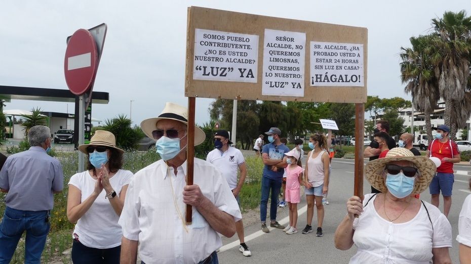 [Img #146817]Los afectados por el corte de luz desde el pasado mes de noviembre han entregado octavillas a algunos conductores explicando su situación y denunciando que llevan casi siete meses sin electricidad en sus casas. Hay que recordar que Aguadulce es un asentamiento dentro del término municipal de Rota de unas 400 viviendas en zona no urbanizada, de las que muchas pagan IBI y 134 tienen contadores legales de luz, pero de momento, nada de eso les vale para recuperar un suministro básico especialmente, para aquellos que tienen ahí su única vivienda en la que residen todo el año.  Los ánimos están caldeados.