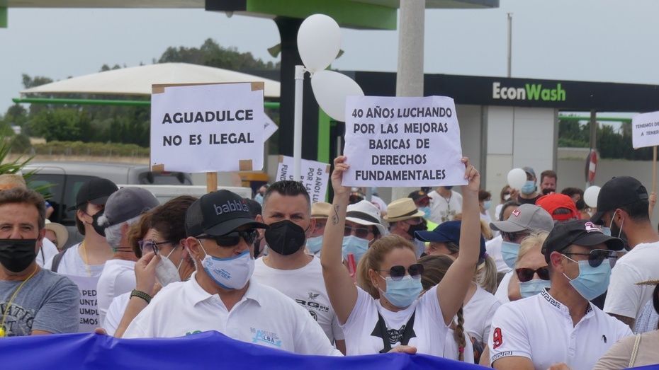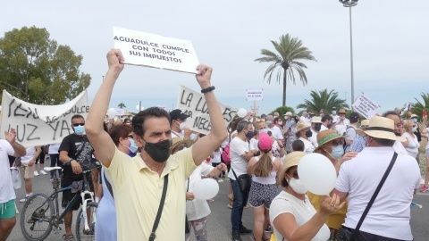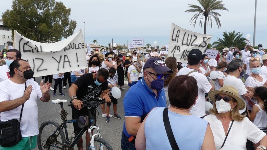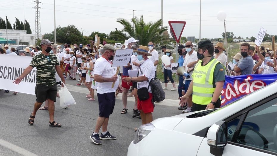 [Img #146778]Segunda movilización de los vecinos de Aguadulce. Más numerosa, más ruidosa y con corte de tráfico para hacerse notar. Están hartos y desesperados por encontrar una solución que les permita volver a tener luz en sus viviendas tras casi siete meses sin suministro y por ello, han emprendido un calendario de movilizaciones que este fin de semana ha tenido dos convocatorias, la del viernes pasado ante el Palacio Municipal Castillo de Luna y la de hoy domingo, en la rotonda de la A-491 situada en la segunda entrada de Costa Ballena.