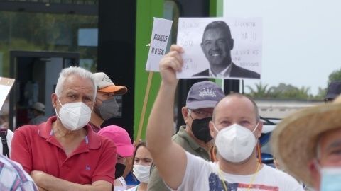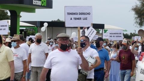 [Img #146807]Según la asociación de vecinos de Aguadulce, desde que se produjo la avería en noviembre de 2020 que llevó a Endesa al corte de luz por la precariedad de las instalaciones, han presentado hasta tres proyectos uno de los cuales, Endesa estaría dispuesto a aceptar, pero necesitan una autorización del Ayuntamiento que no les llega y al que acusan de marear la perdiz. Por eso, en la manifestación de esta mañana, las consignas que se han gritado e incluso alguna pancarta se dirigía directamente a Javier Ruiz, alcalde de la localidad,  cuya foto se ha mostrado hoy entre la cartelería que portaban más de 300 vecinos que se han concentrado en un nudo de la A-491 que se ha colapsado.