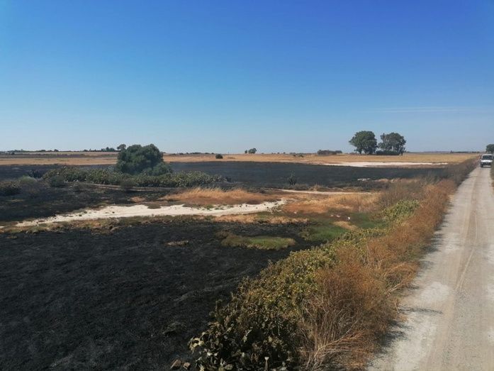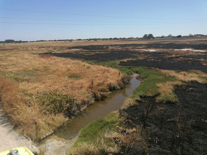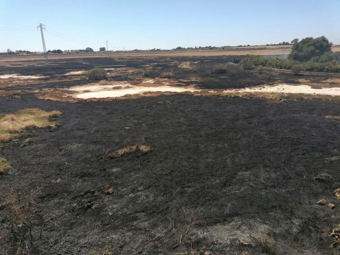 [Img #146947]En la tarde de hoy, Protección Civil ha tenido que volver a actuar para sofocar un fuego que se ha localizado en la zona de Las Marismas, en el camino de los Mostazales que ha afectado a unos 25.000 metros de extensión. Afortunadamente, no ha habido que lamentar daños más allá del terreno de vegetación que se ha quemado y para el que ha hecho falta en torno a unos 3.000 litros de agua para sofocarlo.