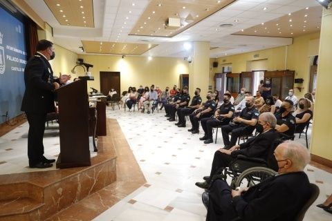 Daniel Manrique les recordó la importancia de respetar la institución que cuenta con el respeto de la ciudadanía y a la que pertenecen desde hoy formando parte de una plantilla donde los nuevos agentes aportarán y donde también aprenderán del resto de sus compañeros. Finalmente, el delegado tuvo palabras de reconocimiento a la labor que realiza toda la plantilla de la Policía Local, y se dirigió en especial a los nuevos agentes para desearles todos los éxitos en el desempeño de su trabajo y recordarles que tanto como delegado de Policía Local como de Personal, está a disposición de ellos y del resto de la plantilla.