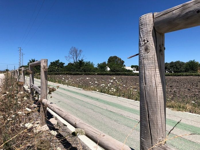 Alberto Izquierdo, que se ha trasladado a la zona para enseñar que la denuncia no es baladí, y que el carril bici que une Rota y Costa Ballena necesita un trabajo importante de adecentamiento y mantenimiento, ha señalado que además, hay partes de la valla de seguridad que discurre paralela al trazado que está rota o tiene puntillas al descibierto por su parte más punzante.