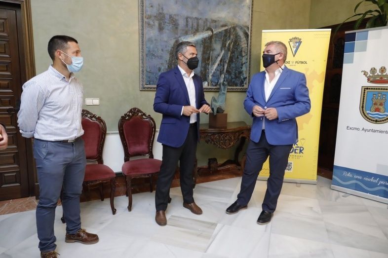 Esta mañana, el alcalde de Rota, Javier Ruiz, acompañado por el delegado de Deportes, José Antonio Medina, ha recibido en el Palacio Municipal Castillo de Luna al presidente del Cádiz C.F., Manuel Vizcaíno.