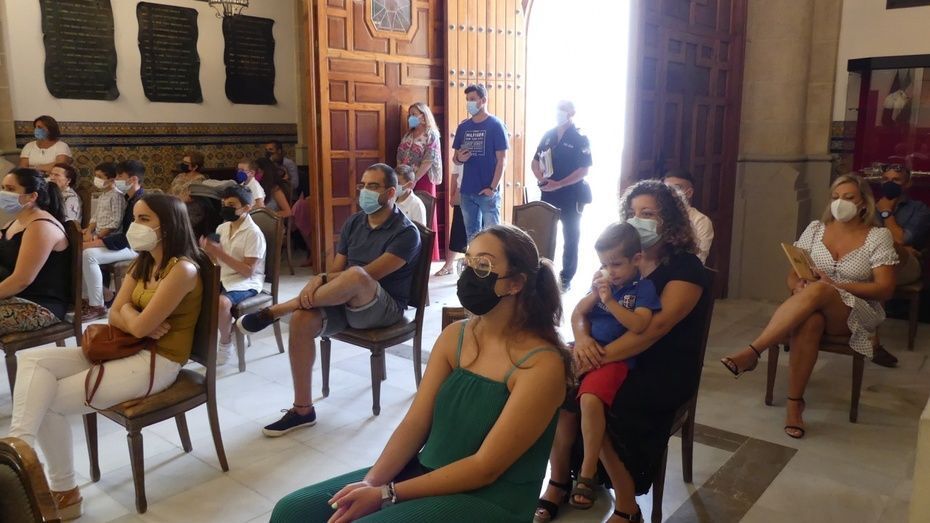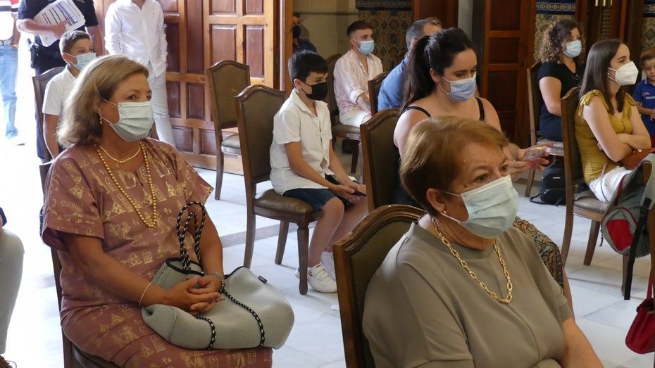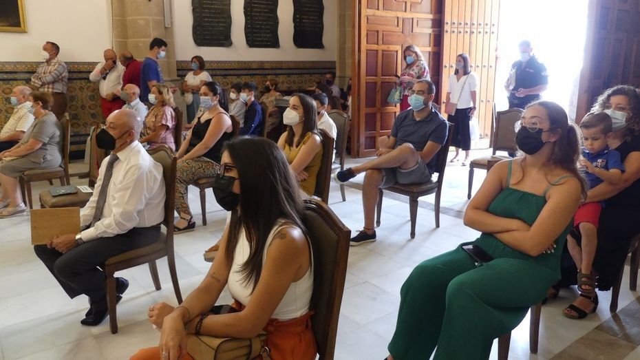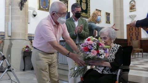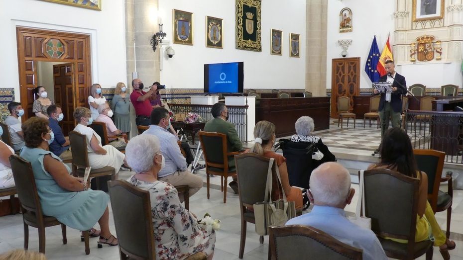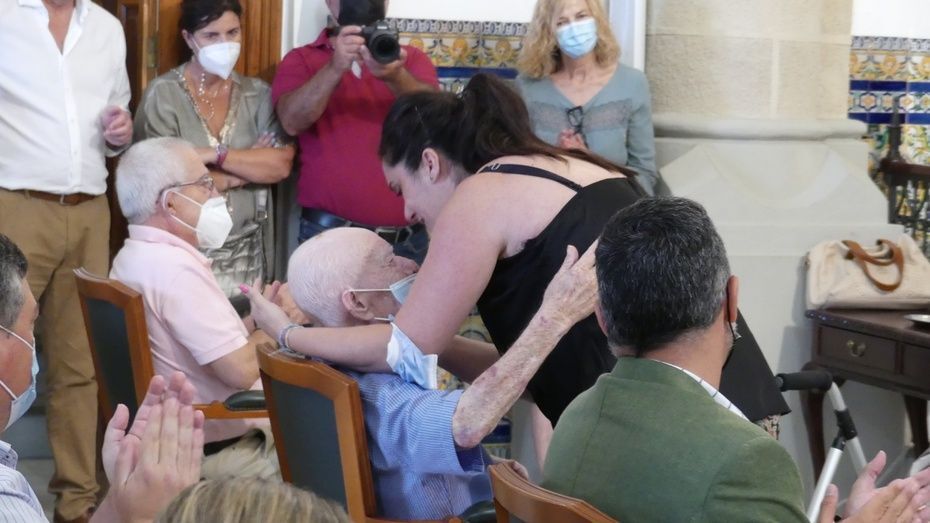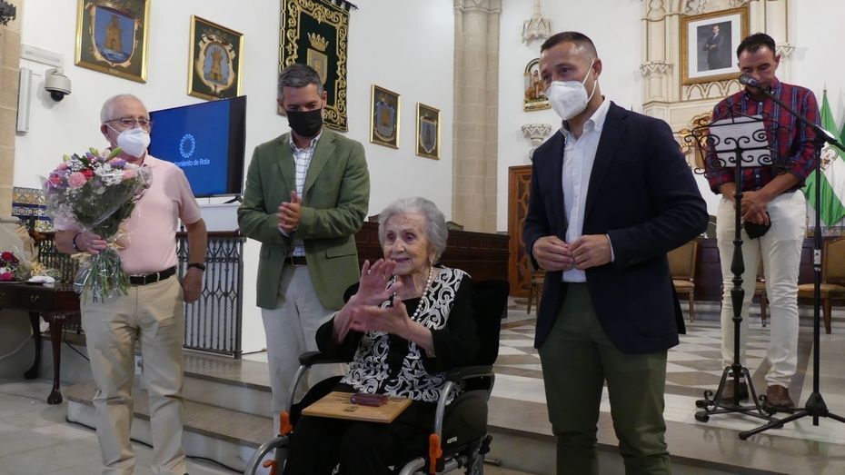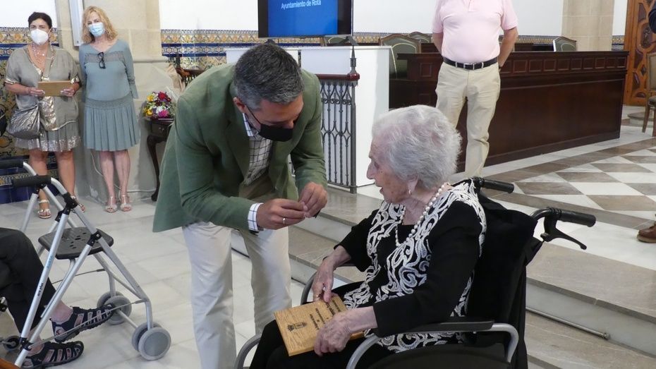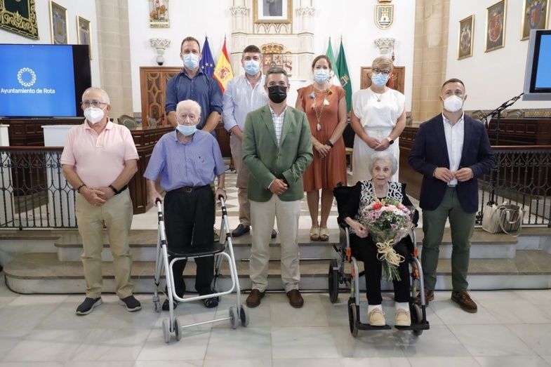 Antonio Bernal Campos de 94 años, y Antonia Palomeque Patino, de 98, han sido hoy los protagonistas de un acto que se ha celebrado en el salón capitular del Palacio Municipal Castillo de Luna, ante la presencia de familiares, amigos y miembros de la Corporación municipal. Este año, por la pandemia, aunque se ha podido celebrar la cita, no se ha invitado a los mayores de la residencia de ancianos que suelen ser fieles a este evento, pero todos los mayores de Rota han estado presentes en este reconocimiento que como decían tanto el alcalde de Rota, Javier Ruiz, como el delegado del Mayor, José Antonio Medina, es uno de los más importantes y que con más cariño se celebra.