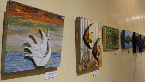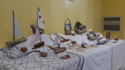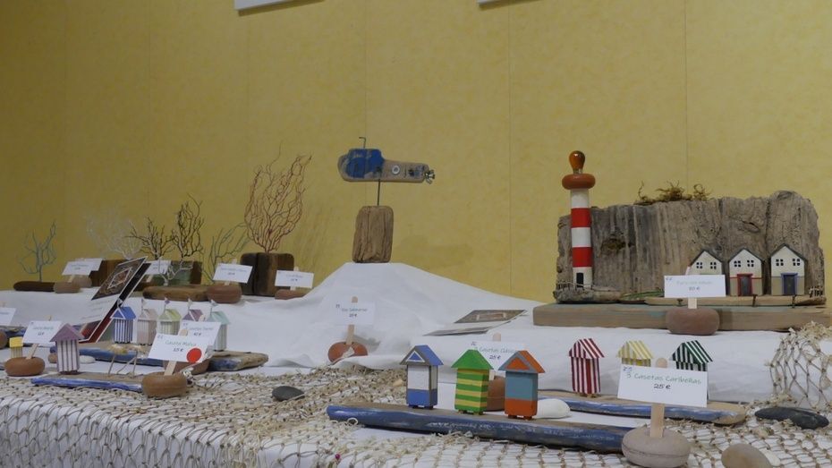 Prudente Arjona lo hace con cuadros pintados al óleo, hechos de cristal reciclado que el propio artista ha recogido en la playa, además de figuras de alambre y de madera. Por su parte, Carmen Verdugo participa con creaciones realizadas con material reciclado e inspiradas en motivos marinos, relacionados con la playa y el mar. Marina Marqueda, en otro sentido, presenta artículos elaborados en tela, sin nada de plástico, hecho a mano pieza a pieza, con motivos tan roteños como son los camaleones. En esa misma exposición, se incluye el trabajo de Reyes Bernal Navarro, con su libro de poemas "Soñando Rota", que ya presentó hace unos meses en la localidad. Hay poemas suyos en esta exposición además de tener a la venta ejemplares de este libro para todo el que esté interesado.