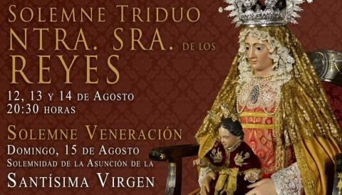 Desde el próximo jueves 12 de agosto hasta el sábado 14 de agosto a las 20:30, los dos primeros días, y a las 20:00 el tercero, se celebrará en la Parroquia de la O el solemne triduo a la Virgen de los Reyes, patrona de Sevilla, pocos años después de haberse recuperado la imagen para el culto público.