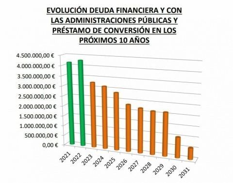 Esa estrechez progresiva de la deuda se produciría, según explica Manrique de Lara, porque los créditos con las entidades privadas vencen el año que viene, y porque se eliminan deudas importantes con las administraciones públicas. "Concretamente hemos pagado a Agencia Tributaria; a la Tesorería venimos pagándole en torno a unos 400.000 euros y nos quedaría sólo 237.000 euros", apostilló el delegado de Hacienda, que asegura que esta operación permitirá conocer la bajada de la deuda, y no implica un ajuste nuevo gracias a la disposición adicional que arbitra Hacienda a través de su ministerio.